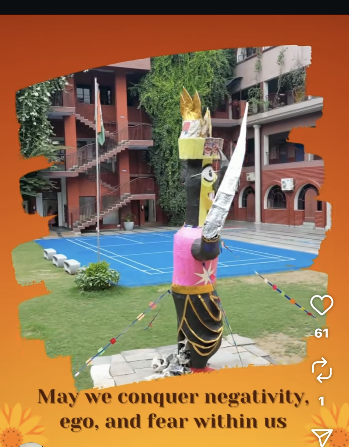 The school celebrated Dussehra with zeal on 30 September 2025. The burning of Ravan’s effigy symbolised the triumph of good over evil and reminded everyone that pride greed and dishonesty are always defeated. The flames carried a message of truth humility and righteousness inspiring students to choose the right path in life. The event was not only a festive occasion but also a moment of reflection encouraging learners to strengthen their character with values that stand the test of time.