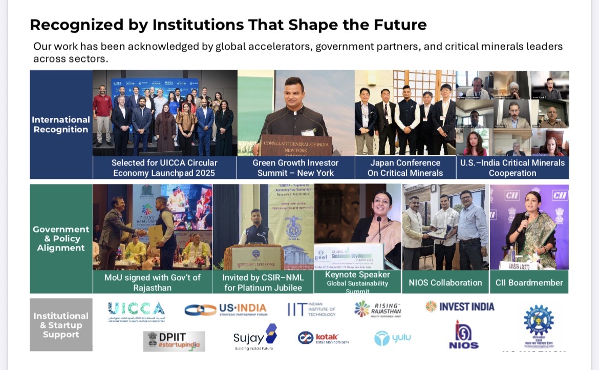 The school congratulates alumnus Aseem Trivedi on receiving the Innovation Sustainability Award for his pioneering venture, Novasensa. After pursuing higher education at Harvard and Duke, he built a professional journey across three continents and spent nine years at Ernst and Young, New York, advising leading financial institutions across the United States and Europe. He later co-founded Novasensa, a Government of India-backed deep-tech startup working on solutions related to clean energy security and critical mineral self-reliance. Recognisedunder the National Critical Mineral Mission at IIT ISM Dhanbad and honoured globally, his achievement reflects purposeful leadership in addressing India’s e-waste challenge.