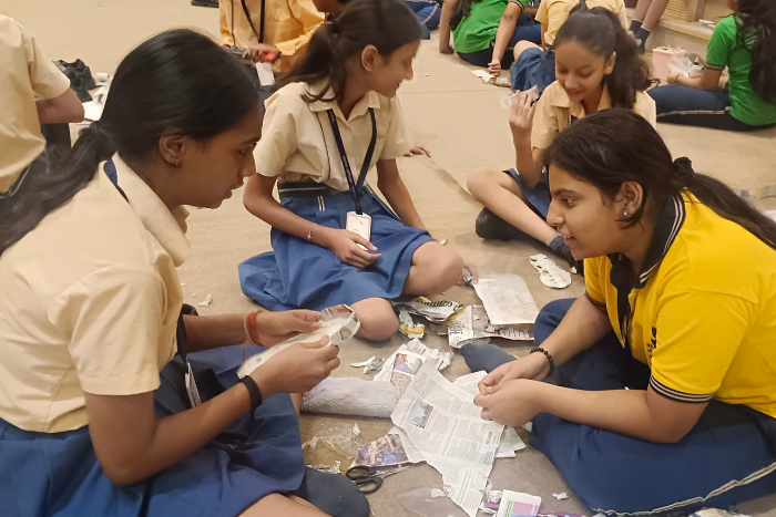 The school organised a hands-on PBL session for Class VIII where students designed and created functional shoes using newspapers. Integrating concepts from mathematics, science, and social science, they explored aspects like cushioning, grip, and terrain suitability. The project fostered practical application of knowledge, encouraged original thinking, and enhanced collaboration. Students crafted innovative, adaptable footwear by addressing real-world challenges in design and utility. The activity not only promoted creativity but also strengthened teamwork, communication, and problem-solving skills through an interdisciplinary, engaging approach.